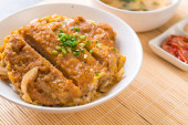 Smażona miska ryżu kotlet wieprzowy (Katsudon) - Japoński styl żywności