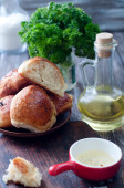 Pieczony ser Camembert z rozmarynem i miód. Smaczne jedzenie.