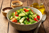 Zdjęcie "Sałatka z pomidorami, serem i kolendry w słodko-kwaśnym sosie. Dania kuchni gruzińskiej. Zdrowa żywność." może być wykorzystywane do celów osobistych i komercyjnych zgodnie z warunkami zakupionej licencji Royalty-free. Obraz jest dostępny do pobrania w jakości wysokiej rozdzielczości do 5760x3840.