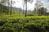 Newry, liści Camellia sinensis krzewów w poranne słońce świeci. Kandy, Sri Lanka
