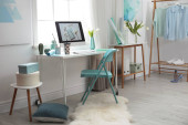 Zdjęcie "Stylowy pokój wnętrze z elementami wystroju mięty" może być wykorzystywane do celów osobistych i komercyjnych zgodnie z warunkami zakupionej licencji Royalty-free. Obraz jest dostępny do pobrania w jakości wysokiej rozdzielczości do 5760x3840.