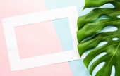 Zdjęcie "Mieszkanie świeckich skład z tropikalny liści na kolor tła" może być wykorzystywane do celów osobistych i komercyjnych zgodnie z warunkami zakupionej licencji Royalty-free. Obraz jest dostępny do pobrania w jakości wysokiej rozdzielczości do 5760x3840.