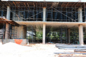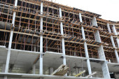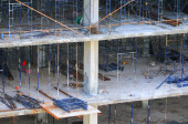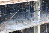 Praca budowlane i rusztowania w miejscu pracy budynku