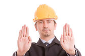 Zdjęcie "pracownik fizyczni Dokonywanie znak stopu" może być wykorzystywane do celów osobistych i komercyjnych zgodnie z warunkami zakupionej licencji Royalty-free. Obraz jest dostępny do pobrania w jakości wysokiej rozdzielczości do 5760x3840.