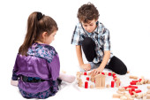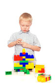 mały chłopiec bawi się plastikowe kostki