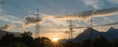 tory z czerwonych świateł w górskiej dolinie kolejowe o zachodzie słońca