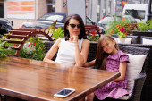 Zdjęcie "Szczęśliwa kobieta Blondynka ubrana w białą bluzkę i szorty posiada jej córeczkę na ręce w parku." może być wykorzystywane do celów osobistych i komercyjnych zgodnie z warunkami zakupionej licencji Royalty-free. Obraz jest dostępny do pobrania w jakości wysokiej rozdzielczości do 5760x3840.