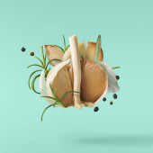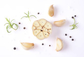 Zdjęcie "Koncepcja żywności. Kompozycja z świeży czosnek, liście rozmarynu i pieprzu na białym tle na białym tle" może być wykorzystywane do celów osobistych i komercyjnych zgodnie z warunkami zakupionej licencji Royalty-free. Obraz jest dostępny do pobrania w jakości wysokiej rozdzielczości do 5760x3840.