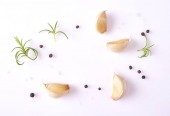 Koncepcja żywności. Kompozycja z świeżego czosnku na turkus tło