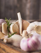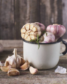Zdjęcie "Fresh surowego czosnku cebule i ząbki w Pucharze białe i zielone sałatki pozostawia na czarnym tle drewnianych" może być wykorzystywane do celów osobistych i komercyjnych zgodnie z warunkami zakupionej licencji Royalty-free. Obraz jest dostępny do pobrania w jakości wysokiej rozdzielczości do 5760x3840.