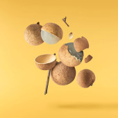 Zdjęcie "Czosnku objętego w powietrzu na turkus tło. Pikantne jedzenie koncepcja" może być wykorzystywane do celów osobistych i komercyjnych zgodnie z warunkami zakupionej licencji Royalty-free. Obraz jest dostępny do pobrania w jakości wysokiej rozdzielczości do 5760x3840.