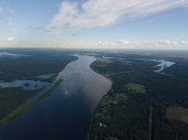 Zdjęcie "Piękny krajobraz aero, patrząc z okna samolotu małe pod skrzydła. Ryga, Łotwa, Europa w okresie letnim. Autentyczne doświadczenie latające w dzień słoneczny, zamglony. Krajobraz z powietrza." może być wykorzystywane do celów osobistych i komercyjnych zgodnie z warunkami zakupionej licencji Royalty-free. Obraz jest dostępny do pobrania w jakości wysokiej rozdzielczości do 5760x3840.