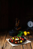 Rustykalne mięsa z zieloną sałatą i ziemniaków kliny patelni