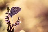 Piękny niebieski motyl, siedząc na kwiat veronica. Mały motyl na gypsyweed. Zbliżenie insektów na roślin. Speedwell kwiat.