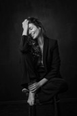 Klasyczny portret zmysłowy młoda kobieta w proste ubrania. Emocjonalne zbliżenie zdjęcie