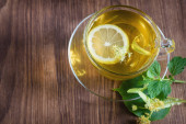 Filiżanka herbaty ziołowe lipy na białym tle