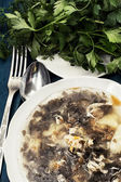 Dieta wegetariańska zupa z grzybów leśnych w misce