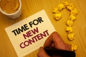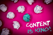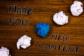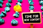 Czas dla nowych treści tekstu pisma ręcznego. Koncepcja rozumieniu praw autorskich publikacji aktualizacji koncepcji publikacji światło różowy podłogi krążyły cień potargane białej kulki środkowy Zielona kula