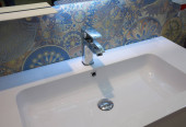 Moderm metal błyszczący mikser montowane na biały umywalka ceramiczna