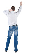 działalności człowieka w garniturze wskazuje znak porządku