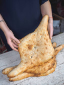 przycięty Zrzut z kobieta posiadający tradycyjny ormiański zhingyalov kapelusze