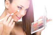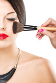 piękna młoda kobieta zastosowanie eyeshadow proszku