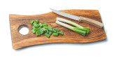 Oryginalne drewniane krojenia wykonane z różnych rodzajów drewna na białym tle