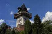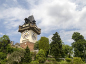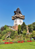 słynnej wieży zegarowej (zegarowa) w Grazu, styria, austria