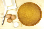 Tarta z krem czekoladowy na podłoże drewniane - widok z góry