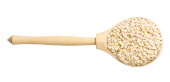 ziarno owsa brązowy z drewnianą łyżką na białym tle