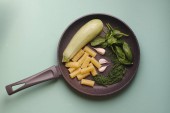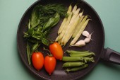 Zdjęcie "organiczne, świeże warzywa cukinia, pomidor, szparagi, bazylia, koperek, zielony groszek, czosnek na patelni" może być wykorzystywane do celów osobistych i komercyjnych zgodnie z warunkami zakupionej licencji Royalty-free. Obraz jest dostępny do pobrania w jakości wysokiej rozdzielczości do 5760x3840.