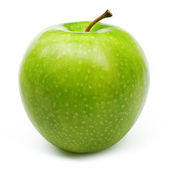 na białym tle świeże zielone Jabłuszko z waterdrops.