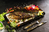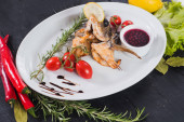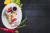 Grillowane mięso stek z sosem raspberrie na podłoże drewniane