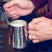 Niezidentyfikowane barista dziewczyna naciśnięcie mielonej kawy z temperamentem int
