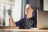 Zdjęcie "Młody Brodaty mężczyzna jedzenie burger i Zamknij uśmiechający się w górę." może być wykorzystywane do celów osobistych i komercyjnych zgodnie z warunkami zakupionej licencji Royalty-free. Obraz jest dostępny do pobrania w jakości wysokiej rozdzielczości do 5760x3840.