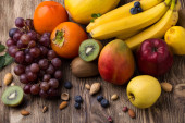 Zdjęcie "Świeże owoce, orzechy. Różne owoce kolorowe tło. Dieta dla zdrowia" może być wykorzystywane do celów osobistych i komercyjnych zgodnie z warunkami zakupionej licencji Royalty-free. Obraz jest dostępny do pobrania w jakości wysokiej rozdzielczości do 5760x3840.