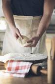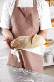 Zamknij widok szefa gospodarstwa świeże, domowe pieczywo w ręce
