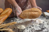 Zdjęcie "Zamknij widok szefa gospodarstwa świeże, domowe pieczywo w ręce" może być wykorzystywane do celów osobistych i komercyjnych zgodnie z warunkami zakupionej licencji Royalty-free. Obraz jest dostępny do pobrania w jakości wysokiej rozdzielczości do 5760x3840.
