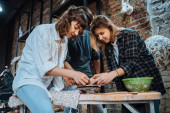 Warsztaty ceramiki ceramiki gliny, Kobieta dekorowanie garnek