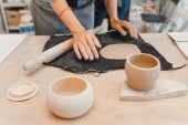 Zdjęcie "Artysta Kobieta w fartuch roboczy uśmiecha się i farby gliniane wśród pędzli i innych narzędzi w nowoczesny warsztat" może być wykorzystywane do celów osobistych i komercyjnych zgodnie z warunkami zakupionej licencji Royalty-free. Obraz jest dostępny do pobrania w jakości wysokiej rozdzielczości do 5760x3840.