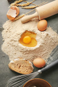 Zdjęcie "Ciasto, Dokonywanie sprzętu i składników na drewnianym stole brązowy" może być wykorzystywane do celów osobistych i komercyjnych zgodnie z warunkami zakupionej licencji Royalty-free. Obraz jest dostępny do pobrania w jakości wysokiej rozdzielczości do 5760x3840.
