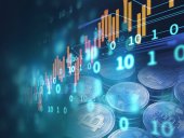 podwójne ekspozycji obrazu giełdzie inwestycyjnej wykres i monety stosu, pojęcie inwestycji i handlu papierami wartościowymi przyszłych