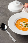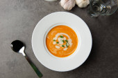 Zdjęcie "Zupa z dyni z przypraw na stole" może być wykorzystywane do celów osobistych i komercyjnych zgodnie z warunkami zakupionej licencji Royalty-free. Obraz jest dostępny do pobrania w jakości wysokiej rozdzielczości do 5760x3840.