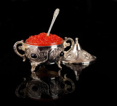 naleśniki z kawiorem czerwonym na wyroby srebrne
