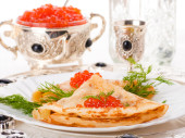 naleśniki z kawiorem czerwonym na wyroby srebrne