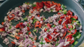 Zdjęcie "połowów błękitka pieczone z warzywa, pomidory, papryka i cebula na blachy do pieczenia, widok z góry zbliżenie" może być wykorzystywane do celów osobistych i komercyjnych zgodnie z warunkami zakupionej licencji Royalty-free. Obraz jest dostępny do pobrania w jakości wysokiej rozdzielczości do 5760x3840.
