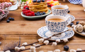 Akcesoria damskie, Pani na wakacje. Okulary przeciwsłoneczne i kapelusz, rogalik i kawa na śniadanie. Dokumenty na wakacje i bilety. Białe tło. Miejsce