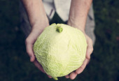 Ręce trzyma granat organicznych produktów z gospodarstwa