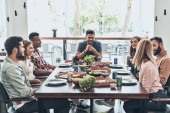 głodnych ludzi nosić jedzenie i uśmiechając się podczas kolacji
