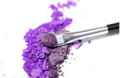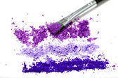 Zgnieciony szczotki cieni do powiek i makijaż na białym tle